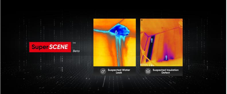 A SuperScene™ intelligens hibafelismerő algoritmusa ingyenes a felhasználók számára és még béta verzióban van, fennáll a kihagyott vagy téves riasztások kockázata. Kezdők (nem szakemberek) számára készült, hogy segítsen azonosítani a szigetelési vagy vízszivárgási problémákat. Az algoritmus kezdeti szűrőeszközként szolgál a hatékonyság javítása érdekében, és a másodlagos elemzéssel és megítéléssel együtt a legjobban használható.