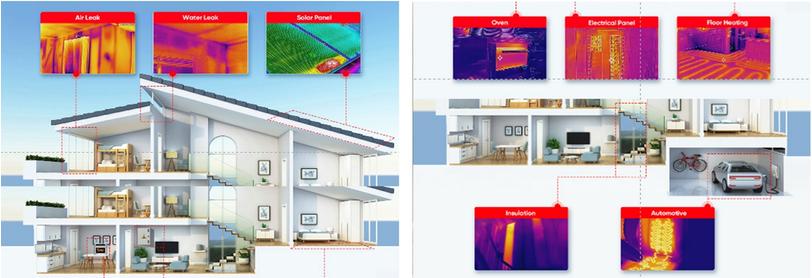 Otthonok ellenőrzésekor nagyon nehéz lehet megtalálni a hiányzó vagy sérült szigetelést, az épületburkolat légszivárgásait és a nedvesség behatolását, mielőtt azok elég súlyossá válnának ahhoz, hogy károsítsák vagy elpusztítsák az épület berendezéseit. A hőkamerákat már alkalmazzák az energiahatékonyság javítására, az energiaköltségek csökkentésére és a lakók kényelmének fokozására.