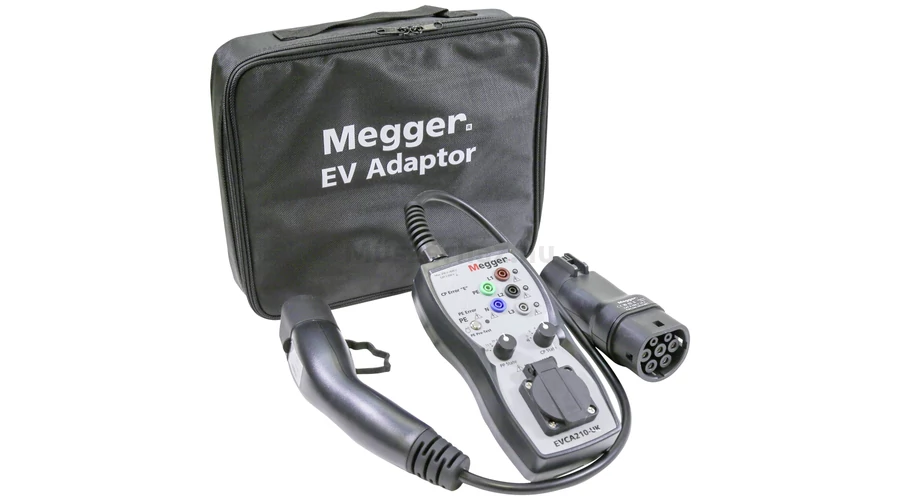 - A Megger EVCA210 kompakt, egyszerűen használható adapter, amelyek a villanyszerelő által a 3-as üzemmódú váltakozó áramú elektromos járművek töltőpontjainak teljes körű teszteléséhez szükséges összes funkció ellátására szolgálnak