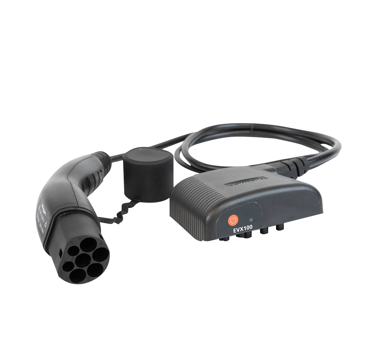 - Az EVX100 az MFT-X1 műszerrel kombinálva ideális tesztmegoldást kínál az elektromos járműtöltők telepítésének ellenőrzéséhez és szervizeléséhez. kiküszöbölve a hagyományos, távolról elhelyezett kézi adapter/vezérlődoboz szükségességét